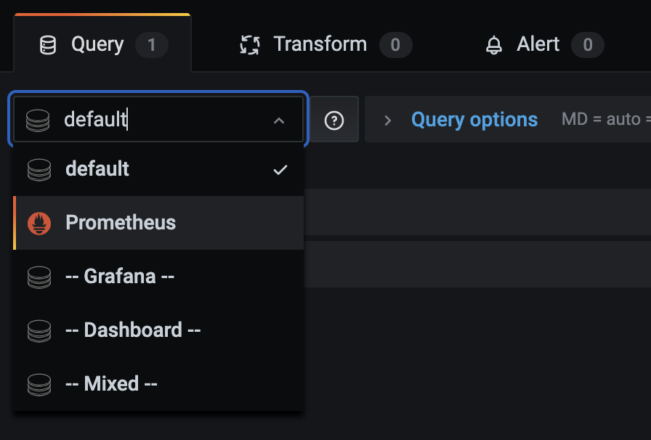 Start working with Prometheus queries by selecting “Prometheus” from the drop-down list of data sources.