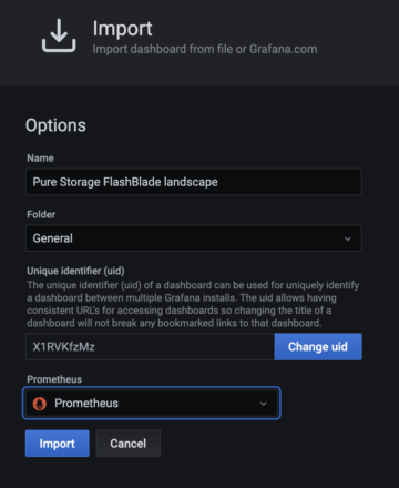 You now have a working dashboard for monitoring your FlashBlade or FlashArray and can further add on graphs as desired.