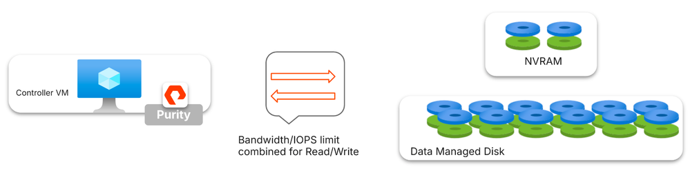 The overall IOPS/throughput of a VM is therefore limited by the lower of: the controller VM's IOPS/throughput cap and the combined IOPS/throughput of all attached managed disks.