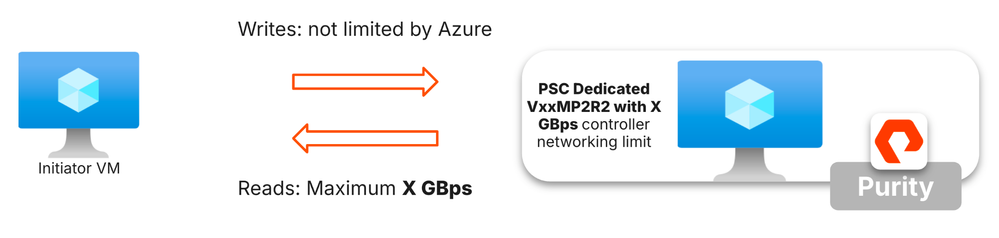 - Network traffic going INTO the PSC Dedicated array - writes - not throttled by Azure outbound bandwidth limits