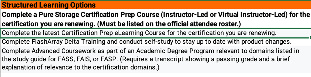 I just successfully renewed my Flash Array Storage Professional cert by tracking my activities.