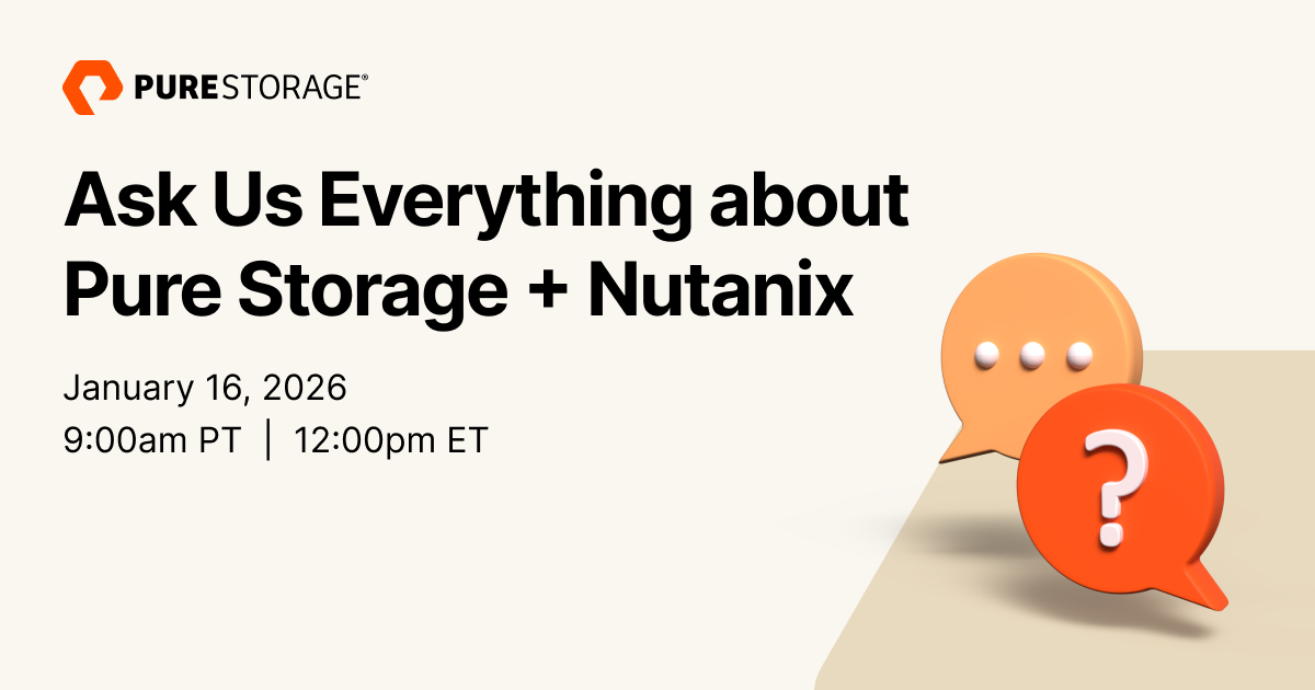 In this month’s episode of Ask Us Everything, we’re talking about the next chapter in virtualization—powered by Pure Storage and Nutanix. As IT leaders rethink their virtualization strategies in the face of rising costs and rapid change, this joint solution offers a simpler, more cost-effective path forward.