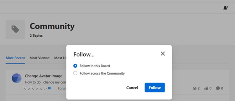 Follows ensure you receive automated messages about the most recent posts and replies that interest you. There are multiple ways in which you can follow content and boards in the community.