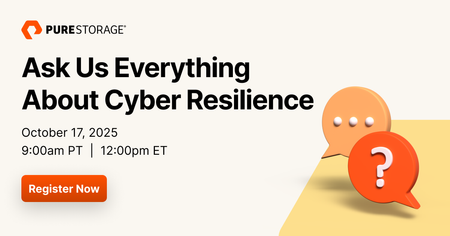 Topic: How are you protecting your data from cyber threats? Are you both protecting your data, while also preparing to recover in the event that your organization is impacted by a cyber event? Join us for a spooky, cyber-focused meeting; a supportive and open forum where we’ll share scary stories, and explore solutions to ensure your data is protected from even the most ghoulish threats. This customer-driven discussion will focus on your experiences and challenges with protecting your data from a cyber attack. Pure Storage experts will offer insights and guidance to help you protect your data from the zombie apocalypse. Get Involved: We're looking for security-focused individuals who would be willing to attend and share their perspective on how they are helping their organization protect against cyber threats, and prepare in the case that recovery is needed. And all are welcome. You don't have to be a Pure Storage customer to attend. Join the community, talk to your peers, and have some fun. Agenda: Welcome, Introductions, Updates Customer Presentation - How to use Pure1 Assessments to review and improve your security posture Customer Presentation - Something strange is happening, but we don't know what it is. How I used Pure1 AI CoPilot along with Varonis to narrow the scope on the "strange stuff" Pure Presentation (w/ alliance partners) - SafeMode, Cyber Resiliency and Isolated Recovery Environments Panel/Q&A - Open discussion amongst the community; w/ security-focused individuals (hopefully) in attendance. Anonymous Group Feedback: Share your thoughts and experiences in regards to data protection. What’s working? What’s not? Where could you use some feedback from the community? Understanding Your Needs: What does your organization need to fully protect your data, and recover if you were ever attacked? We’ll help you pinpoint what truly matters. Exploration Circle: Hear from Pure’s subject matter experts on what they are seeing regarding the latest cyber security and cyber resiliency topics. Support & Resources: Find out where you can get additional help, training, and resources. Date: Wednesday, October 15th, 2-4pm ET. Location: Aces Pickleball, 2730 Maverick Dr, Norwood, OH 45212 (Factory 52) RSVP: https://info.purestorage.com/2025-Q3AMS-COMREPLCRCincinnatiPUGLP_01---Registration-Page.html Stick around after the Pure User Group meeting and enjoy Pies & Pints with Pure Storage, our partners, and fellow customers.259Views2likes1CommentAsk Us Everything about Cyber Resilience