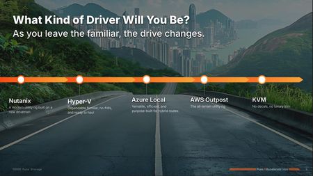 Over the years, VMware vSphere has been the gold-standard — the reliable luxury sedan of the datacenter. It’s delivered a smooth ride with powerful features, a robust ecosystem, and enough polish to keep your operations humming. Many of us have built entire practices, architectures, and skill sets around that platform. But with the Broadcom acquisition, the road has changed. New licensing structures, evolving product bundles, and operational shifts have created uncertainty — the equivalent of finding out that your well-loved sedan suddenly takes only premium-priced fuel and requires a new maintenance shop. So what are your options? Stick with VMware? That’s still a perfectly valid choice, especially if you double down on modernizing how you run it. Enhancing vSphere with Pure’s FlashArray, FlashBlade, and Fusion gives you ways to simplify, automate, and reduce costs, while maintaining that familiar driving experience. Look for an alternative? That’s where things get interesting. Because changing hypervisors isn’t like changing lanes on the highway — it’s more like switching to a whole different vehicle, with a new dashboard, new handling, new maintenance, and a different driving style. Framing the Conversation: The Virtualization Vehicle Metaphor In our session, we used a driving metaphor to illustrate these choices: 🚛 Hyper-V — The Municipal Fleet Pickup Reliable, widely available, low-cost. If you know Windows, you know Hyper-V, and the licenses may already be in your toolbox. 🚙 Nutanix AHV — The Retro-Modern Concept Car Streamlined, integrated, designed for simplicity. An HCI approach that reimagines what virtualization can look like. 🚐 Azure Local — The Electric Sprinter Van Hybrid-ready, with a familiar dashboard if you live in the Microsoft ecosystem. Built for flexible, modern routes. 🚗 AWS Outposts — The Off-Road Luxury SUV The same AWS powertrain, but adapted to handle rugged hybrid terrain on-premises. 🏎️ KVM — The EV Sports Car That’s Actually a Customized Japanese Compact (or maybe a well-used Ranger) Flexible, open-source, highly modifiable — but definitely for drivers who are ready to get their hands dirty and do their own tuning. Each of these “vehicles” comes with a different mix of: ✅ migration effort ✅ operational changes ✅ skill requirements ✅ and data protection needs Key Takeaways from Accelerate Here’s what stood out during our live session and the conversations that followed: ✅ There is no drop-in replacement for VMware. Each platform brings its own challenges and benefits. ✅ Migration is not just technical — it’s cultural, operational, and often requires reskilling your team. ✅ Modernizing with vSphere is still a strong path — with storage, automation, and security improvements, you can get more from what you already own. ✅ Pure is built to be your co-pilot — no matter which hypervisor you choose, we’re there to help you protect, manage, and move data seamlessly. One theme that resonated was that the driver matters as much as the car. Your organization’s skills, processes, and risk tolerance all shape which road makes sense. You can’t pick a new hypervisor in a vacuum — you have to look at what you can maintain, what you can train for, and what you can support. Where We’re Going with This Series We had a ton of material packed into Accelerate — far more than fits in a single session recap. So here on Pure Community, I’ll be breaking down each of these hypervisors in detail, one at a time. Here’s what you can expect: 🚛 Hyper-V We’ll dig into its Windows ecosystem strengths, where it works well, and what trade-offs come with a move from VMware. 🚙 Nutanix AHV Here we will take a look at how a platform that once was a integrated HCI. Can offer simplicity when it meets enterprise-grade capabilities on Pure Storage — and where it may leave gaps. 🚐 Azure Local Let's explore the strength is a hybrid-ready strategy. The native integrations, and what to watch out for when moving workloads from traditional hypervisors. 🚗 AWS Outposts Together we’ll break down why Outposts is not just a “VMware replacement,” but really an AWS extension, with its own Day 2 and migration realities. 🏎️ KVM We’ll explore the open-source options, why so many see it as a cost-saver, and the skills you’ll need to manage it at scale. So, Who’s Driving? My biggest takeaway from Accelerate is this: Your hypervisor journey is less about the technology, and more about the people and processes behind it. Every route — modernize VMware, switch to a new platform, or blend hybrid options — has trade-offs. But with the right planning, the right skills, and the right partners, you can make the journey smoother. Pure is committed to being your co-pilot, whichever path you choose. Whether you’re rolling out Fusion, looking to modernize with FlashArray, or exploring migration options, our ecosystem and integrations are designed to keep your data resilient, performant, and simple to manage. Join the Discussion I’d love to hear from you: 🚗 Are you staying on VMware? 🚗 Modernizing your vSphere environment? 🚗 Kicking the tires on an alternative hypervisor? What worries you? What excites you? Drop a comment below — to keep the conversation going. Let’s keep mapping this road trip — together.89Views3likes0Comments